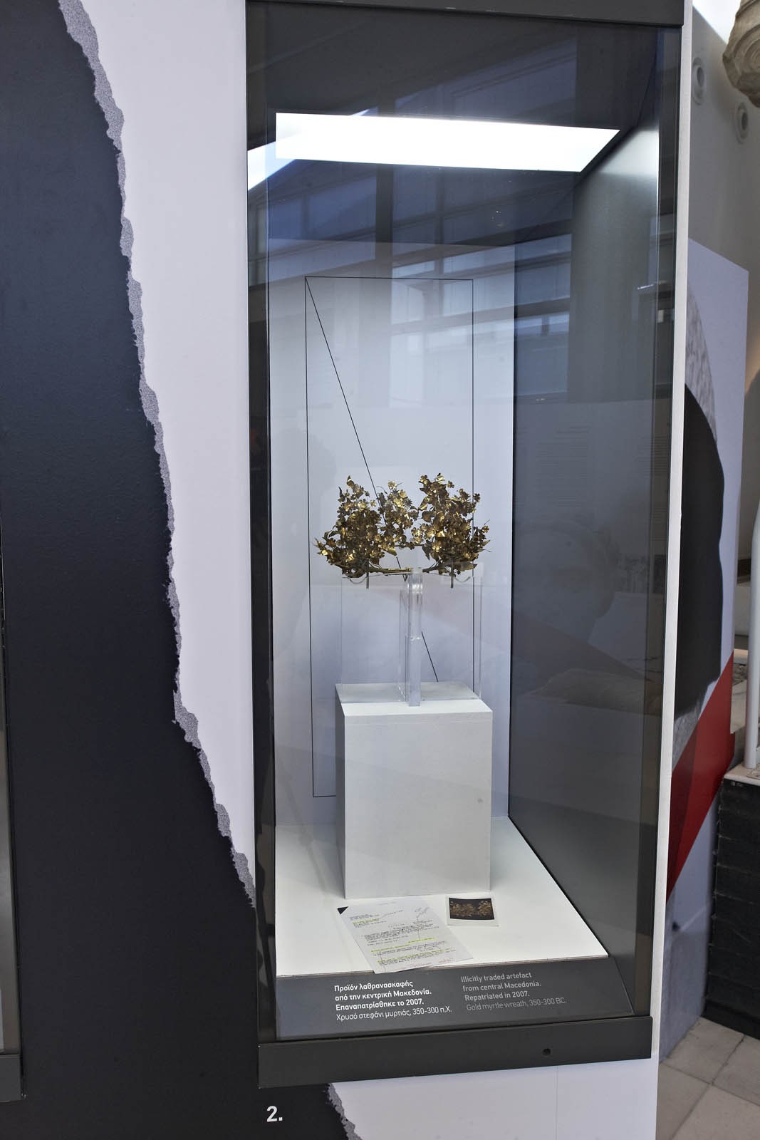 More than one hundred ancient artefacts were exhibited, all coming from illegal excavations, with photographs of illegal trading catalogues and rare archival material. The comparative presentation of two ancient gold wreaths (one from the Aristotle University excavations at Sanctuary of Eukleia in Vergina, the other from the Getty Museum, a product of trafficking which was repatriated in 2007), highlighted in a very eloquent way how trafficking inevitably leads to the loss of knowledge and in essence, the loss of our history.