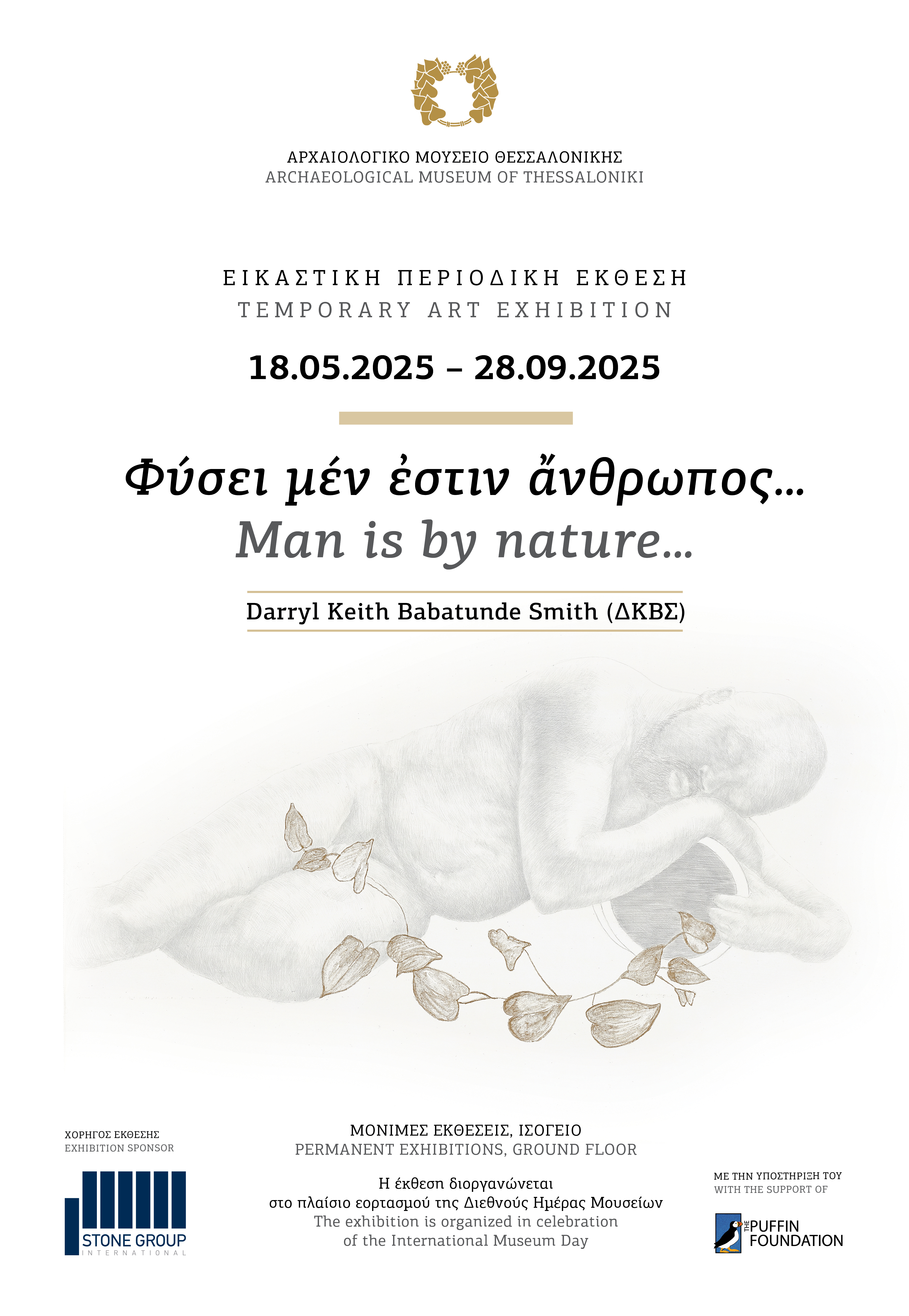 Η περιοδική εικαστική έκθεση με τίτλο «Φύσει μέν ἐστιν ἄνθρωπος…» περιλαμβάνει συνολικά οκτώ ζωγραφικά έργα του Darryl Keith Babatunde Smith (D.K.B. Smith), όλα μικρών διαστάσεων, τα οποία παρουσιάζονται αναρτημένα στους τοίχους τριών μόνιμων εκθέσεων του Αρχαιολογικού Μουσείου Θεσσαλονίκης (ΑΜΘ): «Ο Χρυσός των Μακεδόνων», «Στη Μακεδονία από τον 7o αι. π.Χ. ως την Ύστερη Αρχαιότητα» και «Θεσσαλονίκη, Μακεδονίας Μητρόπολις».