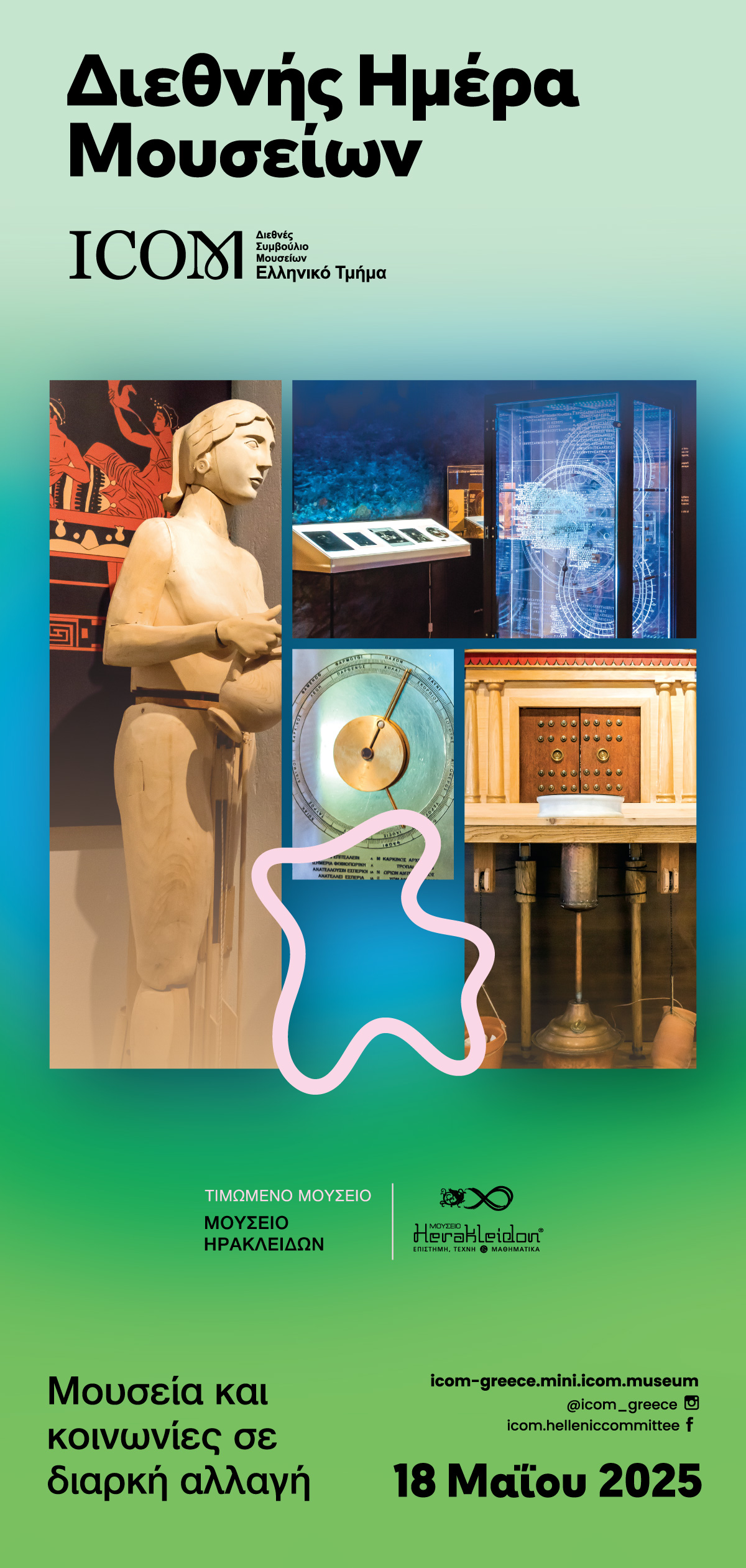 Η 18η Μαΐου είναι αφιερωμένη κάθε χρόνο σε ένα συγκεκριμένο θέμα που αφορά στα μουσεία και στην προστασία της πολιτιστικής κληρονομιάς. Το θέμα του εορτασμού της Διεθνούς Ημέρας Μουσείων 2025 είναι «Μουσεία και κοινωνίες σε διαρκή αλλαγή».