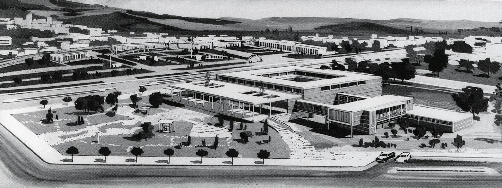 Ο αρχικός σχεδιασμός του Πάτροκλου Καραντινού το 1960, και η αρχιτεκτονική πρόταση για τη διαμόρφωση του περιβάλλοντος χώρου του Μουσείου, όπως παρουσιάστηκε στο ΚΣΝΜ.